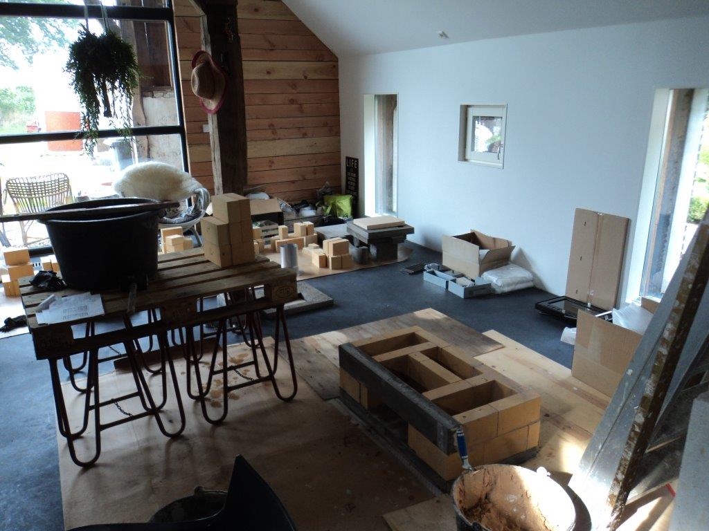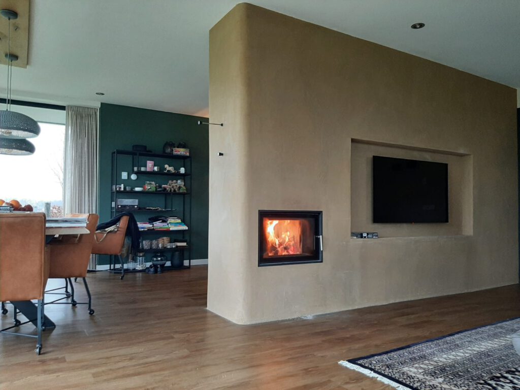 We kennen leem ook als enkel afwerkmateriaal (leemstuc). Het is dus ook mogelijk om een mantel te bouwen uit speciale keramische platen i.p.v. leemstenen en af te werken met leemstuc. Dat geeft een gelijke uitstraling, maar zorgt er voor dat de kachel minder traag reageert en sneller te bouwen is. In een adviesgesprek kunnen we bepalen wat beter bij uw woning past.